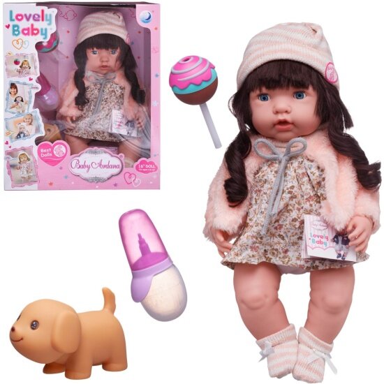 Пупс-кукла Baby Ardana, в платье и розовой шубке, в наборе с аксессуарами, в коробке, 40см