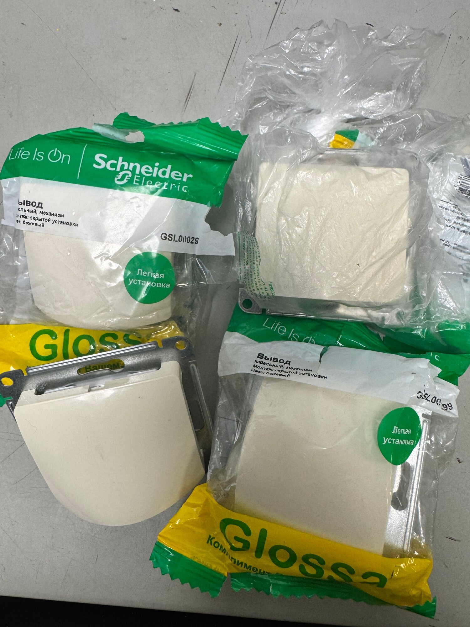 4шт. - GLOSSA Вывод кабеля, механизм, бежевый / Systeme Electric; арт. GSL000299; оригинал / - комплект 4шт 1 305 ₽