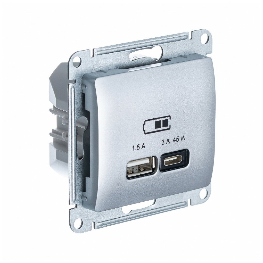 GLOSSA USB розетка A + тип-C 45W высокоскор.заряд. QC, PD, механизм, алюминий () SCHNEIDER ELECTRIC GSL000329 (1 шт.)