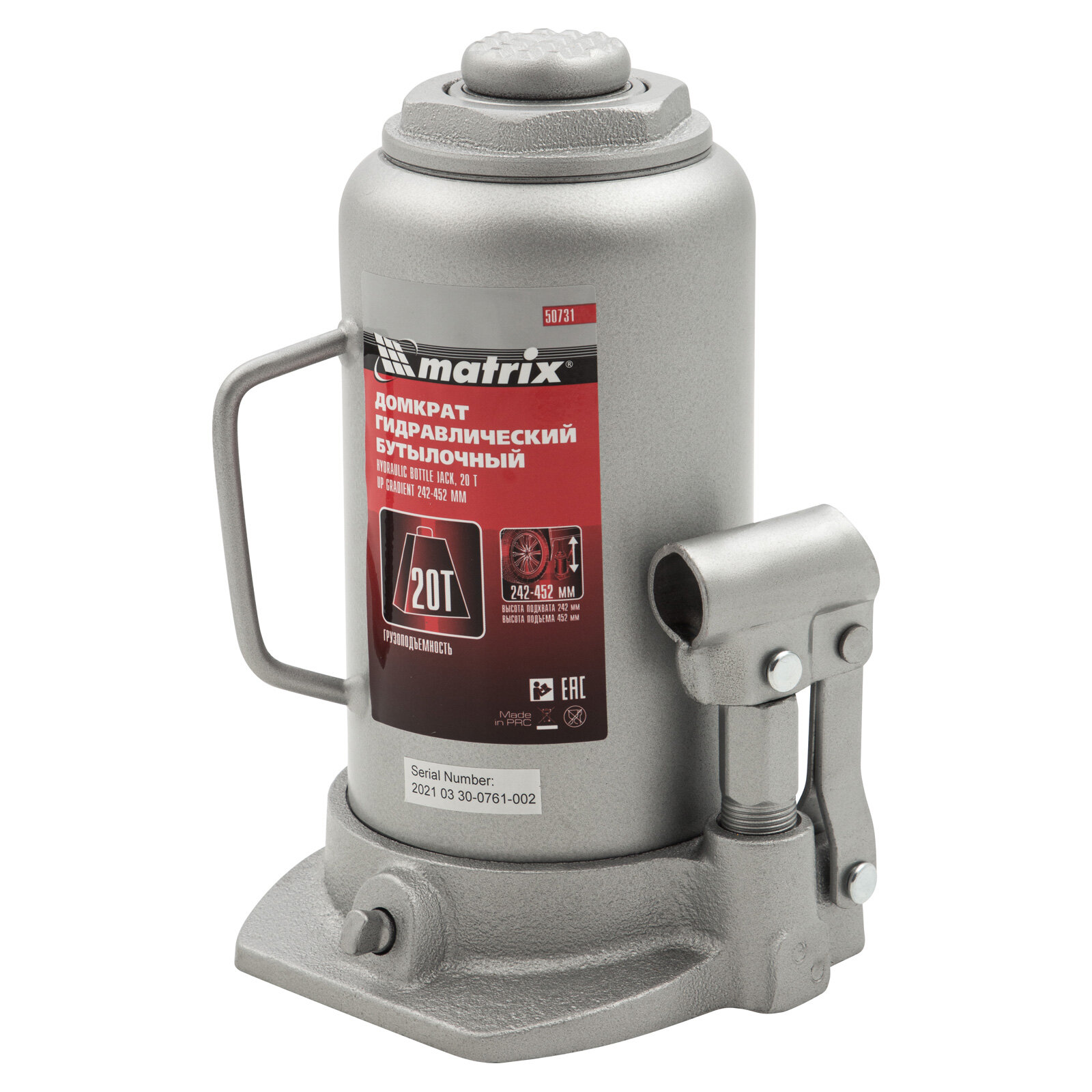 50731_Домкрат! Гидравлический Бутылочный, 20Т, H Подъема 242-452Мм Matrix арт. 50731