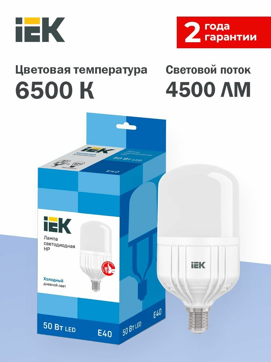 Светодиодная лампа HP 50Вт 230В 6500К E40 IEK информация: