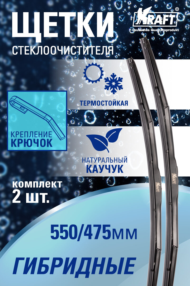 Щетка стеклоочистителя 550/500 мм гибридная комплект 2 шт KRAFT HYBRID LINE KT 830916, KT830916 KRAFT KT 830916