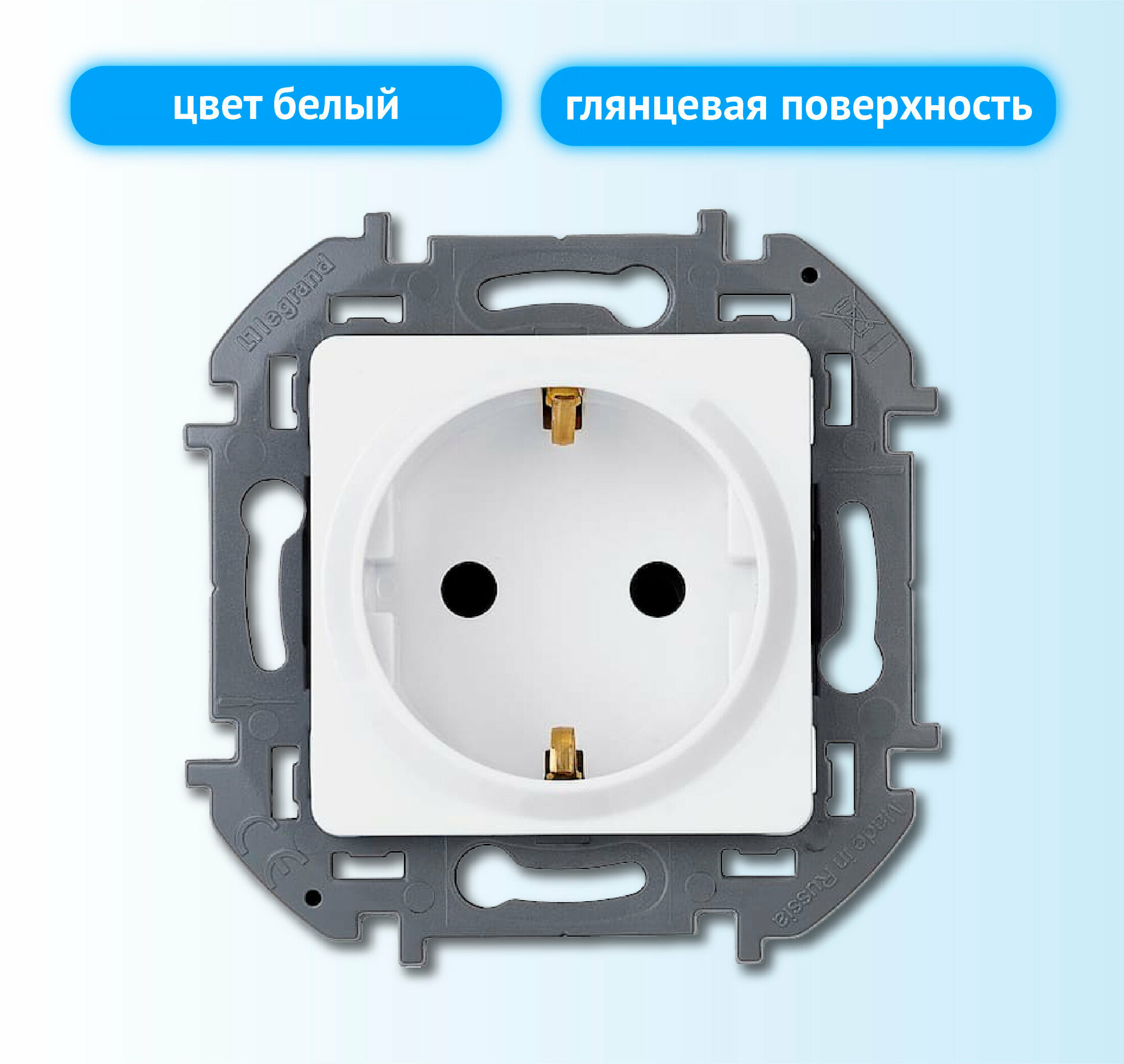 Розетка 220В с заземлением Legrand Inspiria для скрытого монтажа, цвет - белый