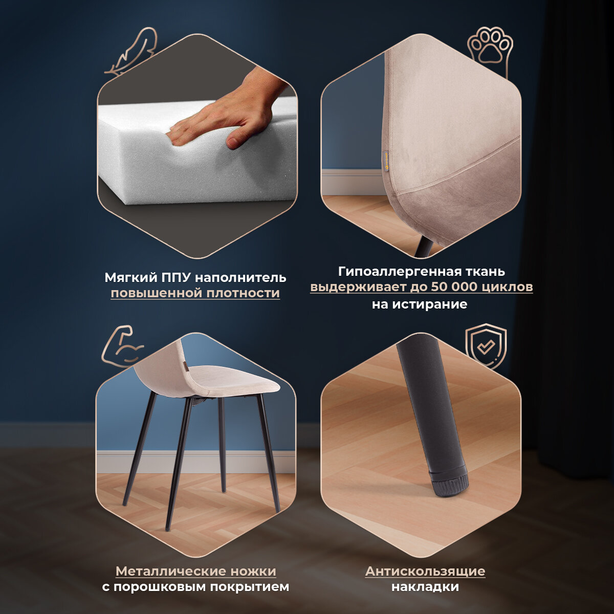 Комплект стульев для кухни TetChair BREEZE (mod. JSC-58), 4 шт, велюр/металл, песочный/черный 13 179 ₽