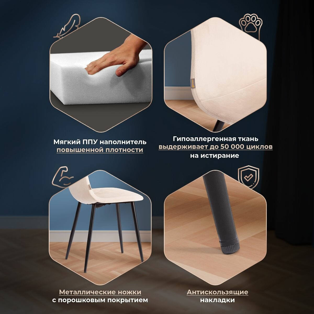 Комплект стульев для кухни TetChair BREEZE (mod. JSC-58), 4 шт, велюр/металл, песочный/черный 13 179 ₽
