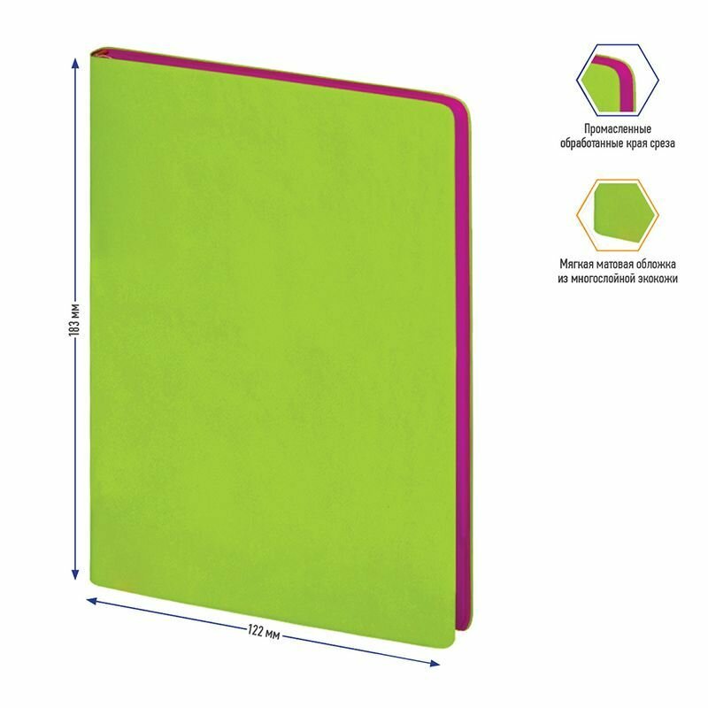Berlingo Ежедневник недатированный "Fuze", B6, 136 листов, кожзам, цветной срез, салатовый