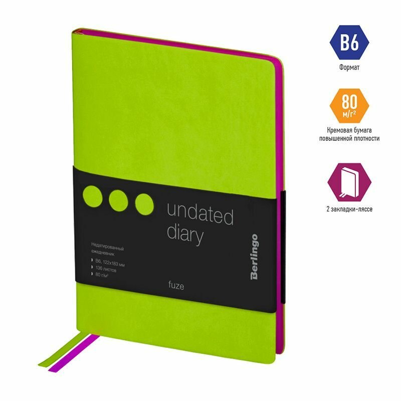 Ежедневник недатированный Berlingo B6, 136 листов, кожзам, "Fuze", цветной срез, салатовый (UD0_87602)