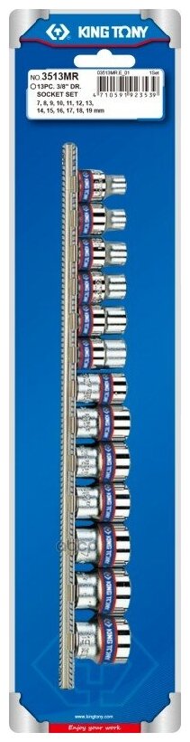 King Tony Набор Торцевых Головок 3/8"", Двенадцатигранные, 7-19 Мм, 13 Предметов KING TONY арт. 3013MR