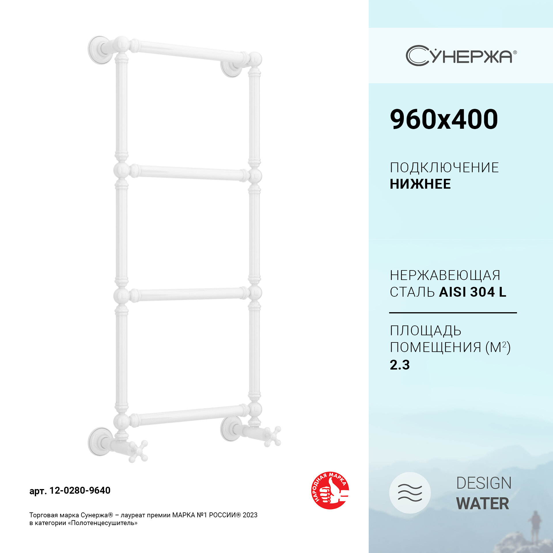 Отзывы на Полотенцесушитель водяной Сунержа Ренессанс 1304 960х400 Белый