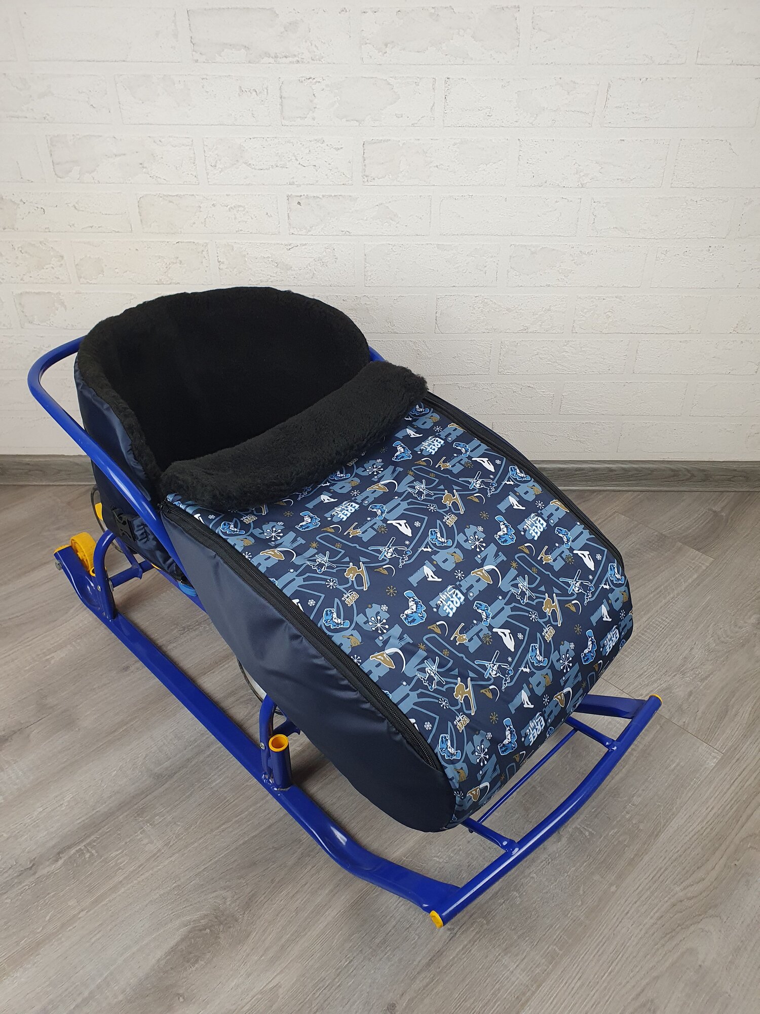 Матрасик для санок меховой 3 в 1 Спорт темно-синий бок темно-синий мех черный информация: