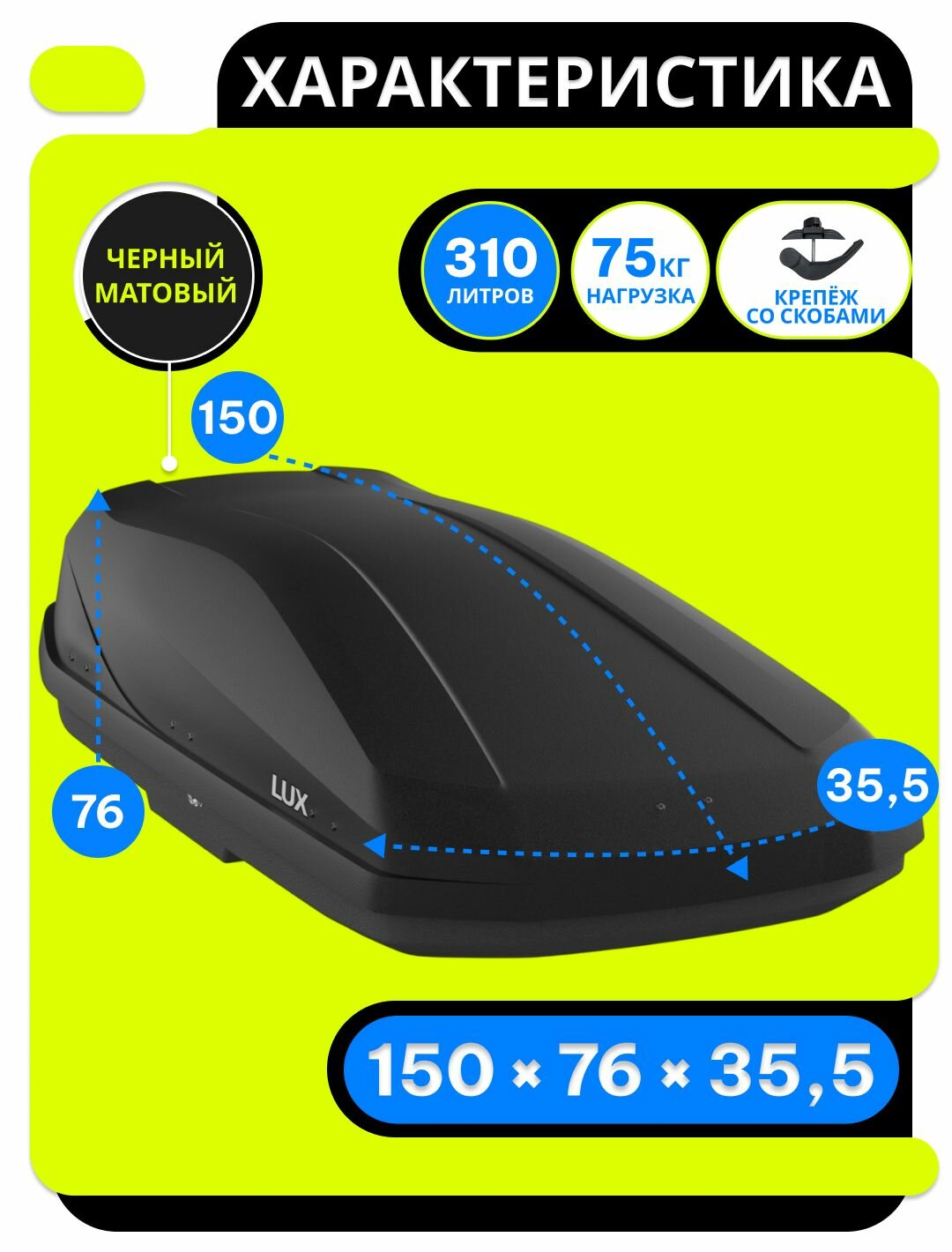 10 цен на Автобокс LUX Irbis 150, на крышу 310 литров 150х76х35,5, черный матовый двусторонний / Бокс Люкс Ирбис