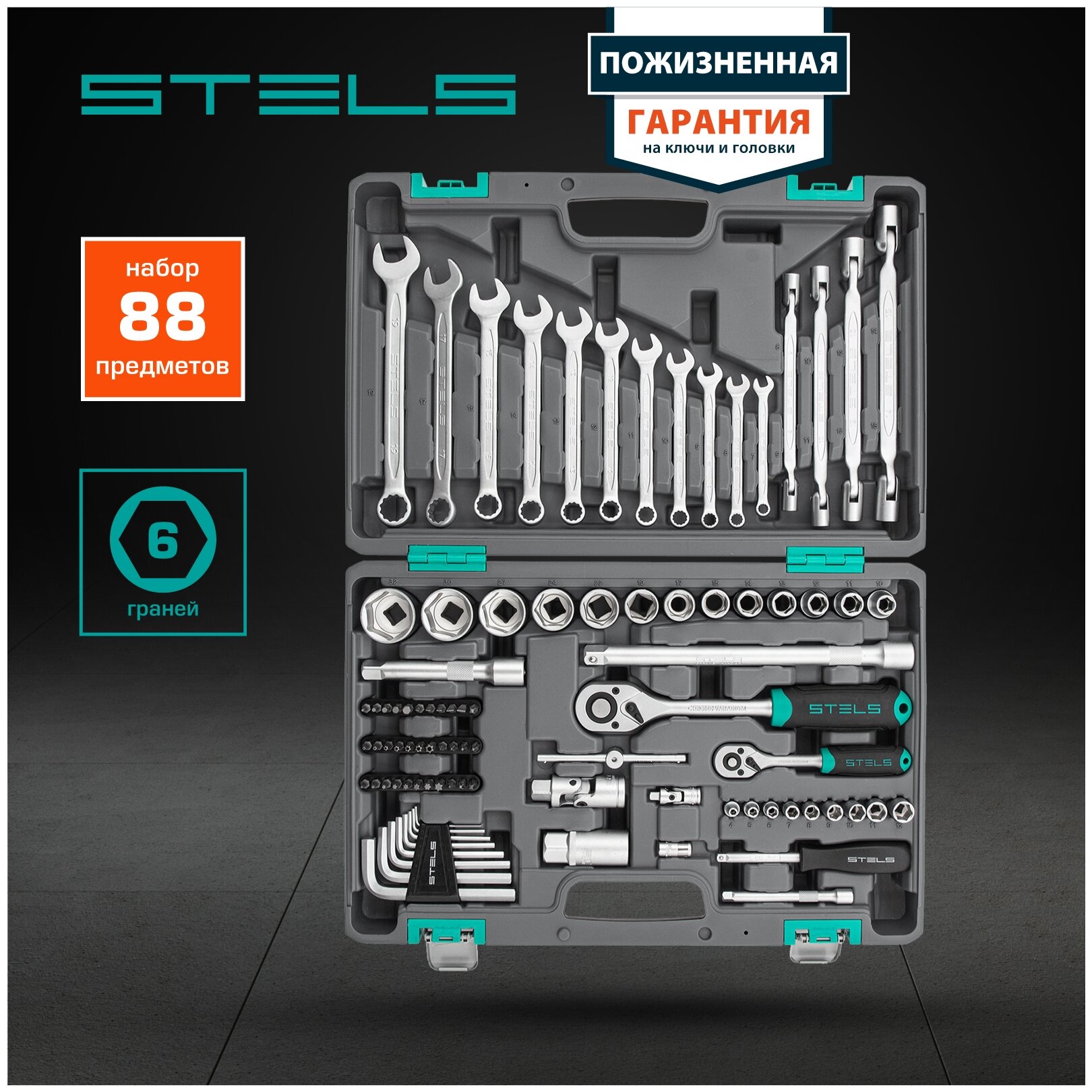 Набор инструментов Stels, 1/2, 1/4, CrV, пластиковый кейс, 88 предметов информация:
