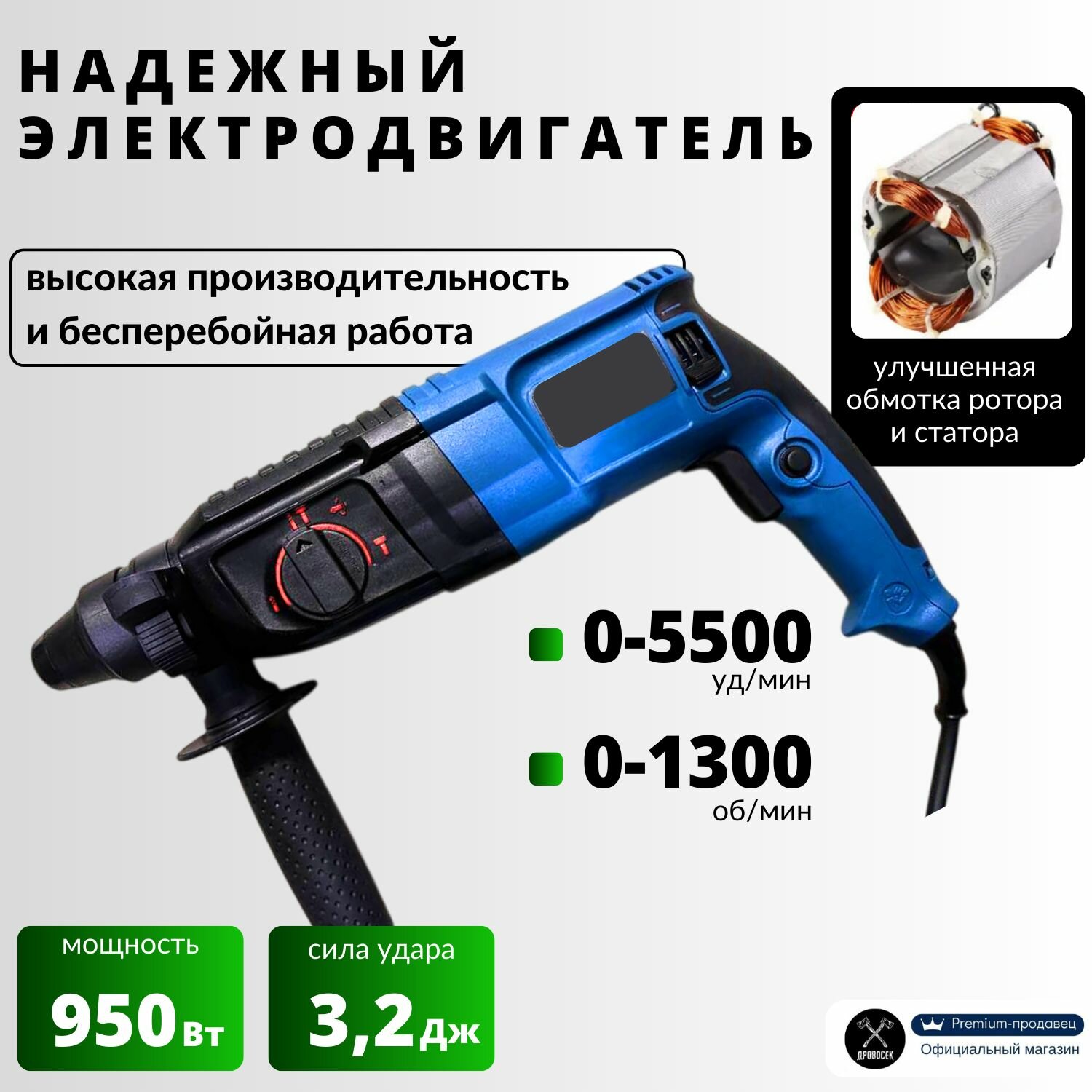 Перфоратор Варяг ПЭ-950П электрический (950Вт, 0-1300об/мин, 0-5500уд/мин, 3,2Дж, 3 реж, SDS+) в кейсе, от сети, подарок мужчине