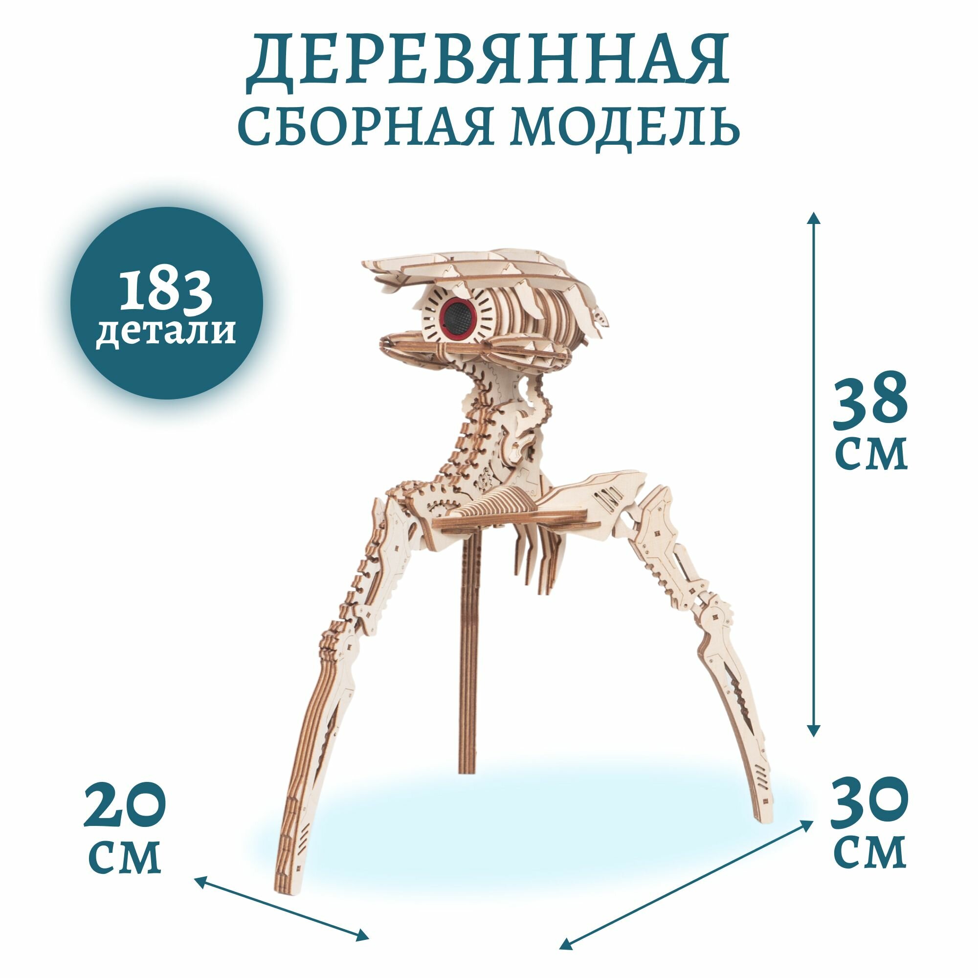 10 цен на Деревянный 3д конструктор модель сборная Lemmo - Светильник Робот Захватчик Миров, 183 детали