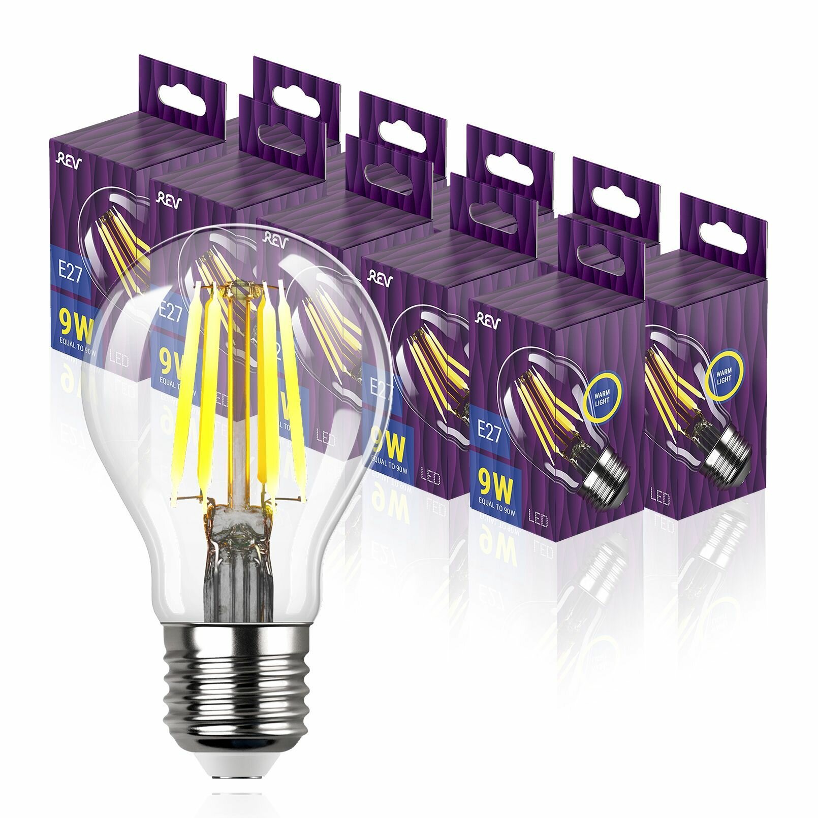 Упаковка светодиодных филаментных ламп 10 шт REV 32475 1, 2700К, Е27, FA60, 9Вт