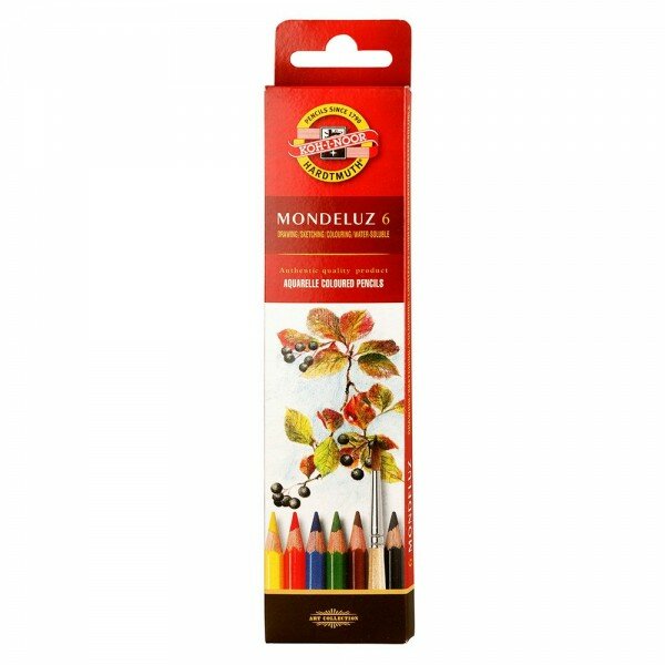 Карандаши цветные KOH-I-NOOR акварельные художественные "Mondeluz", 6 цветов, 3,8 мм, заточенные (3715006001KSRU)