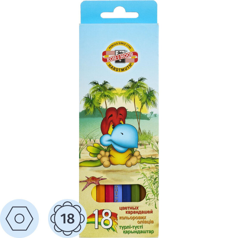 Карандаш Koh-I-Noor Карандаши цв. BIRDS 3553 шестигран. 18цв. коробка/европод.