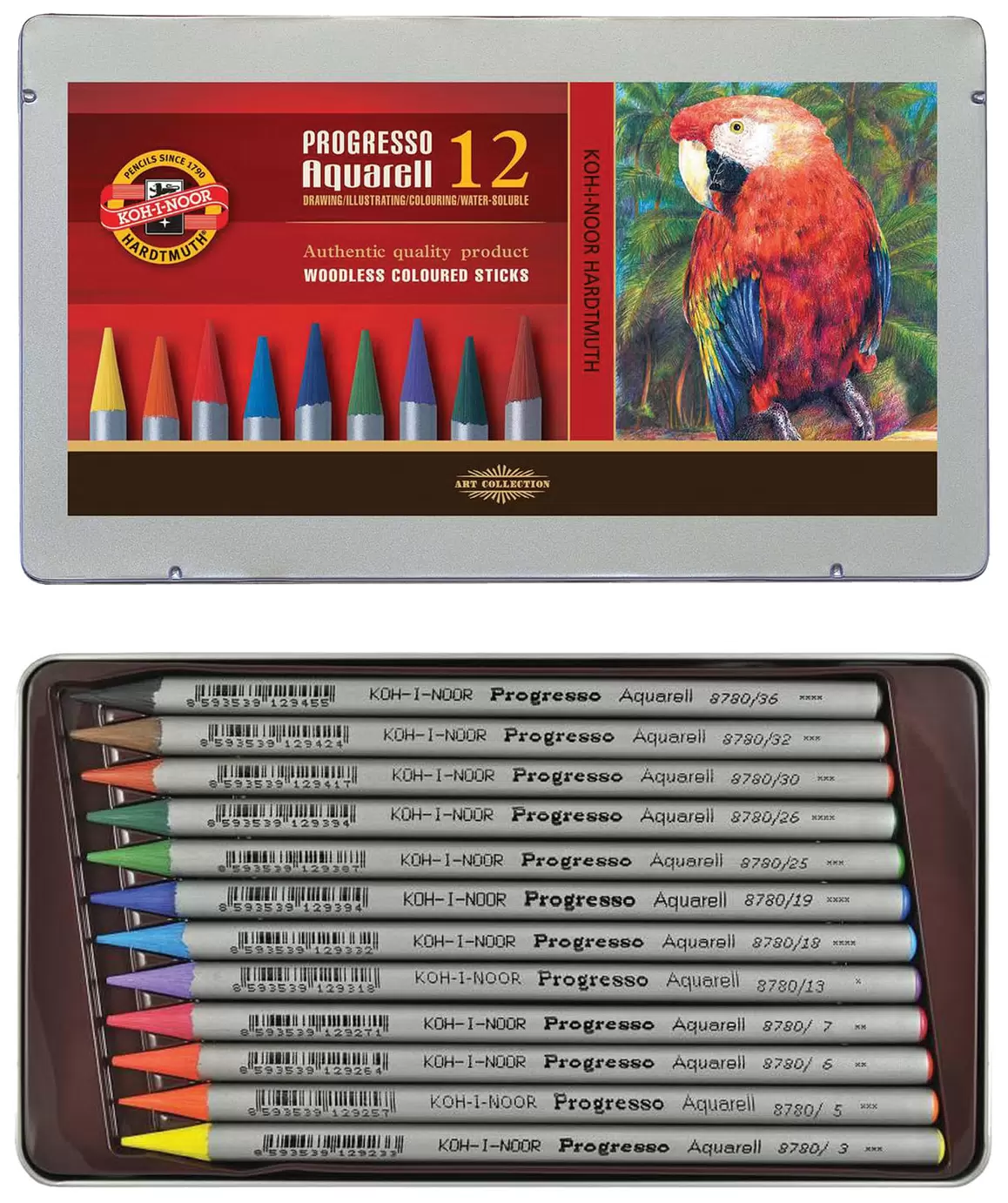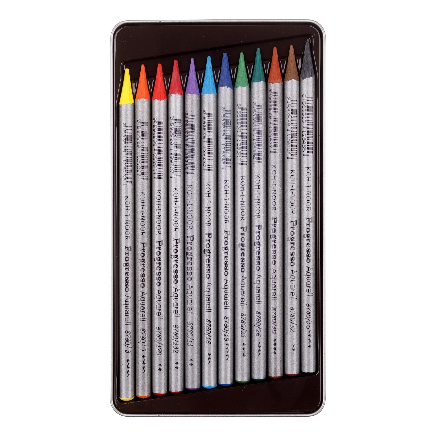 Карандаши цветные Koh-i-Noor Progresso Aquarell 8782 8782012001PL, круглый, 12 цв., коробка металлическая