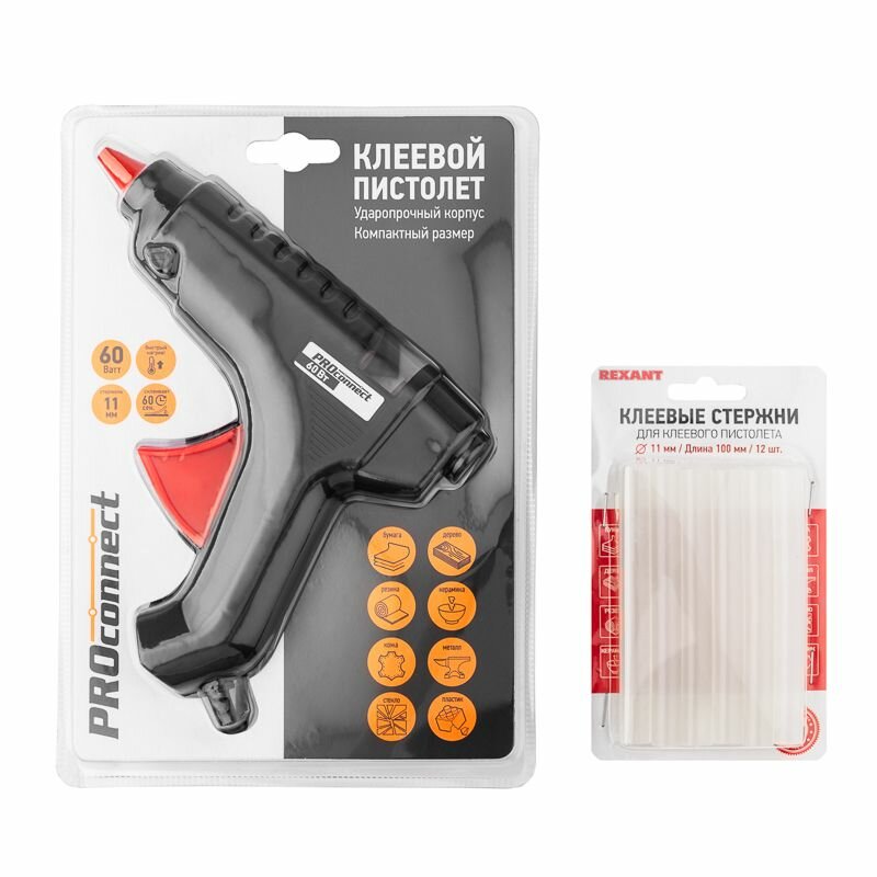 Пистолет термоклеевой сетевой REXANT ПК03 набор для творчества 60вт, стержни 11мм) 12-1703