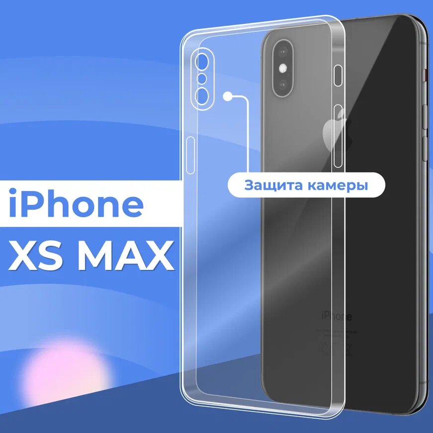 Ультратонкий силиконовый чехол для телефона Apple iPhone XS Max с защитой камеры / Прозрачный защитный чехол для Эпл Айфон Икс Эс Макс
