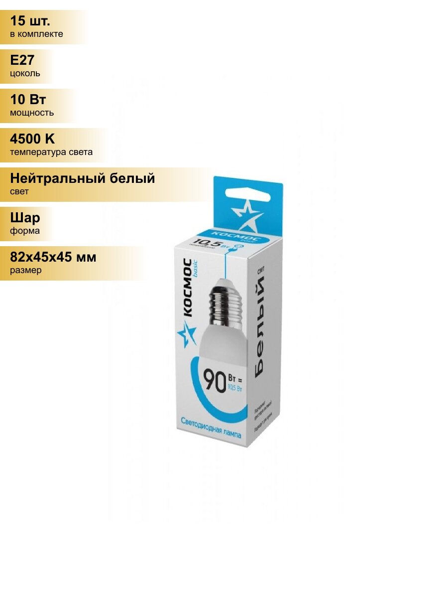(15 шт.) Светодиодная лампочка Космос шар E27 10,5W (10W) (860lm) 4500K 4K матов. 82x45 LkeLED10.5wGL45E2745 Нейтральный белый. Цоколь E27 информация: