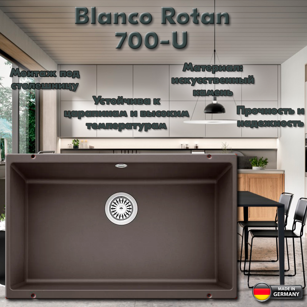 10 цен на Мойка BLANCO ROTAN 700-U, искусственный гранит, прямоугольная, кофе, монтаж под столешницу