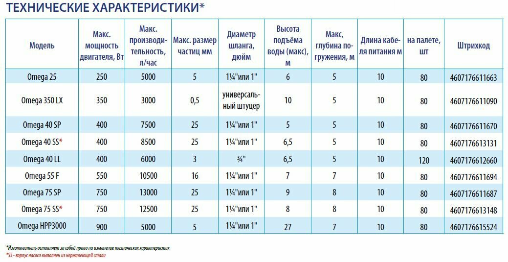 Насос погружной дренажный Omega 40 SS BELAMOS информация: