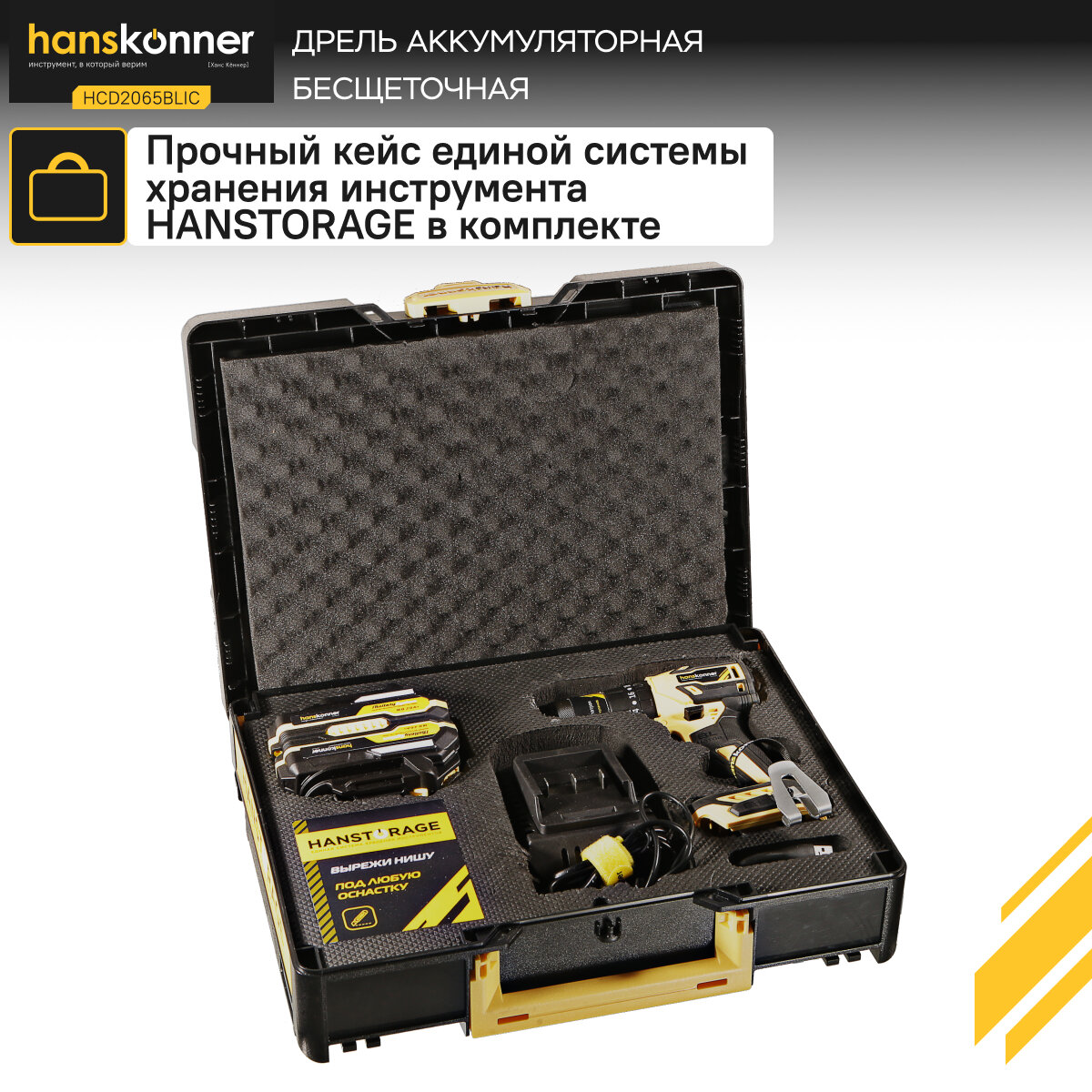 10 цен на HCD2065BLIC Аккумуляторный шуруповерт Hanskonner 1BatterySystem