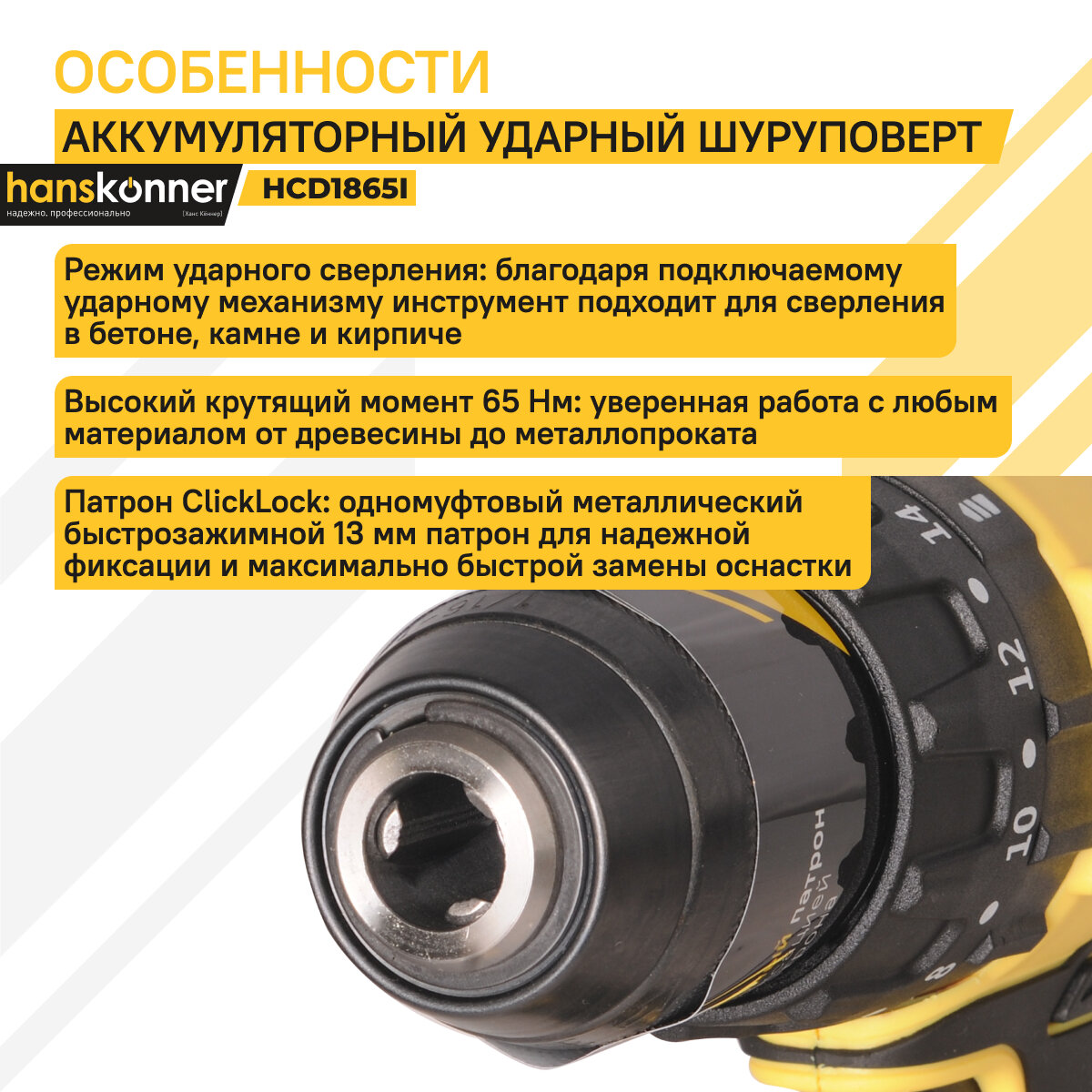 Шуруповерт ударный HANSKONNER HCD1865I (HANSKONNER)
