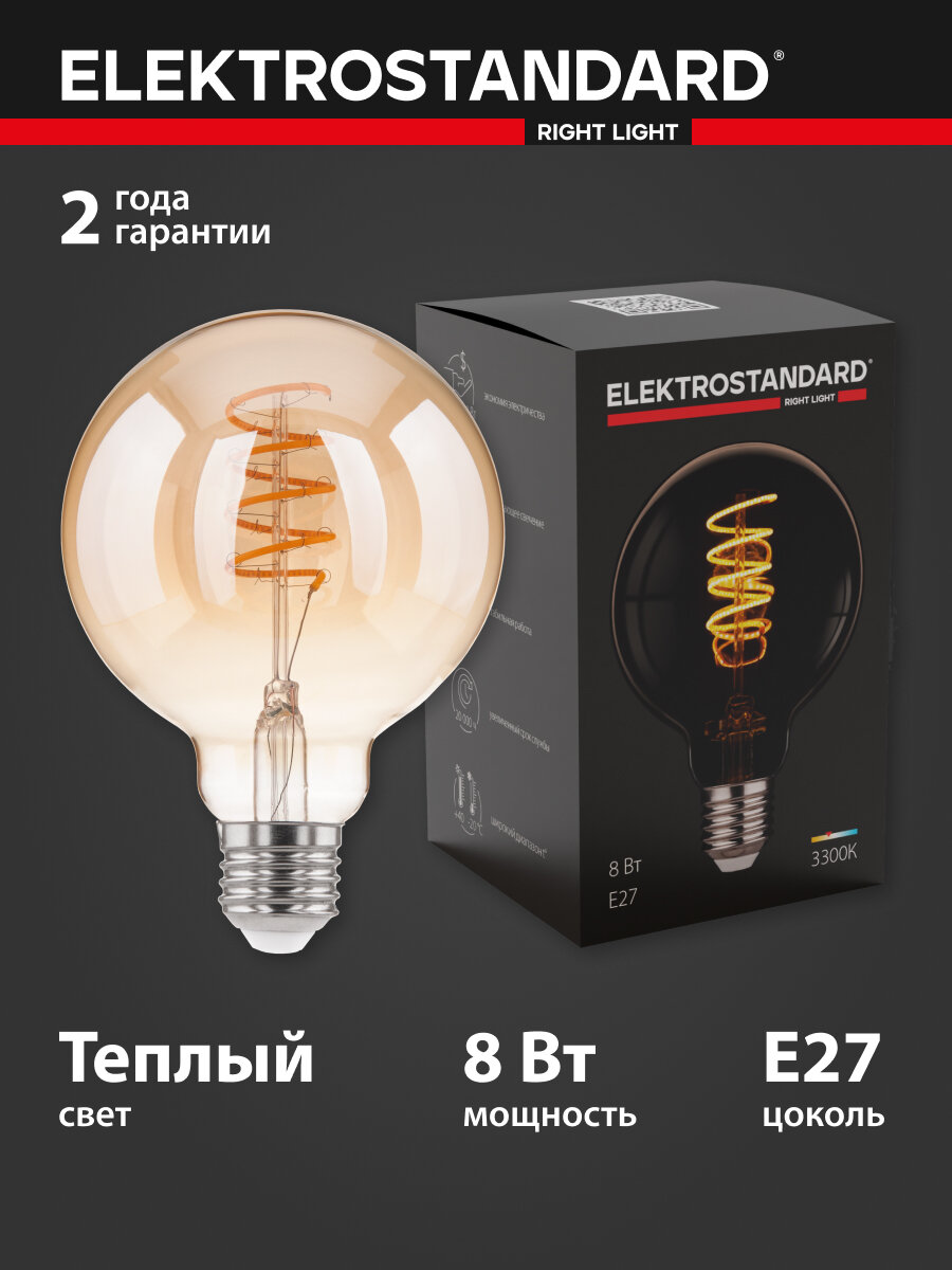 Отзывы на Лампа светодиодная филаментная E27 Elektrostandard G95 F BLE2709, 8 Вт, 3300K, спираль тонированный