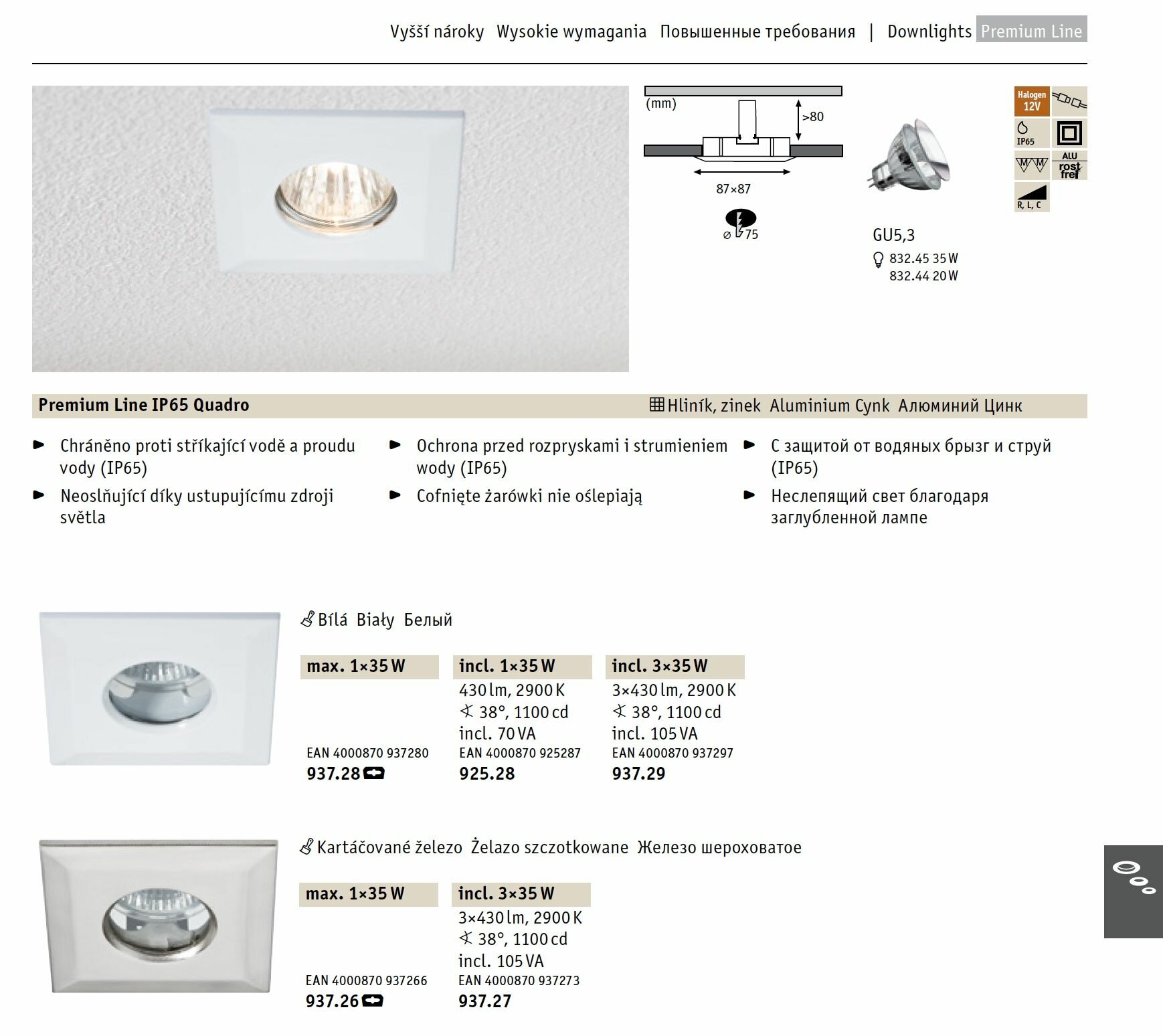 Отзывы на Светильник встраиваемый Paulmann Premium Quadro макс 35Вт IP65 GU5.3 230/12В Белый Без лампы 93728/