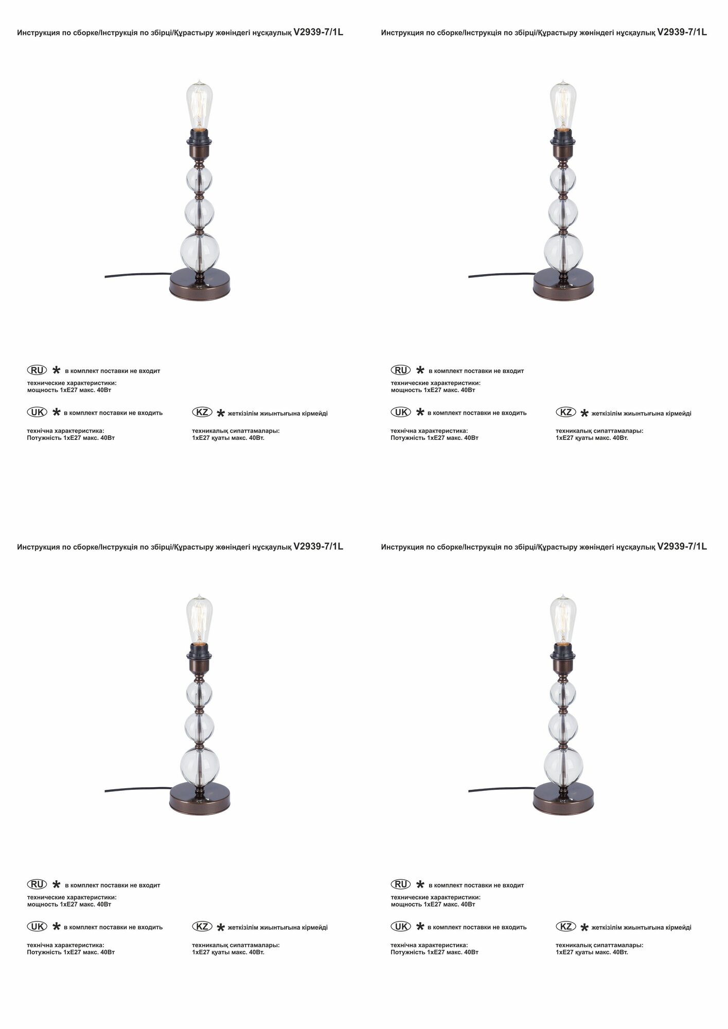 Настольная лампа Vitaluce V2939-7/1L , 1 лампа 3м2, Е27, 40Вт, цвет коньячная бронза. информация: