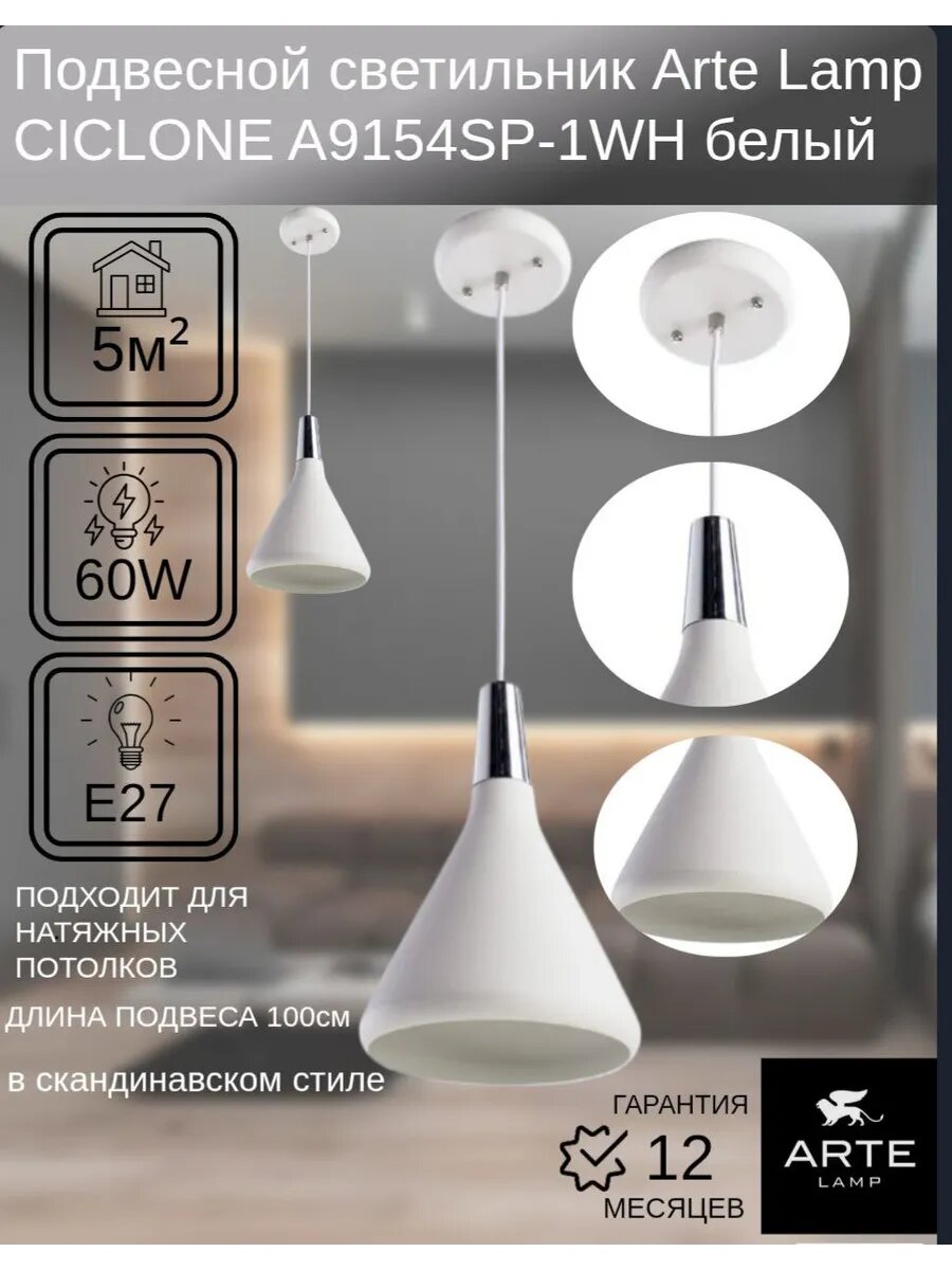 Светильник подвесной Аrte Lamp CICLONE A9154SP-1WH белый информация: