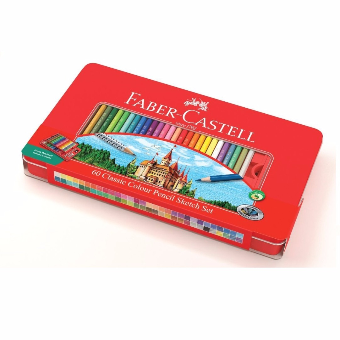 Карандаши 60 цвета Faber-Castell Замок, шестигранный корпус, 2 чернографитных карандаша , с ластик .