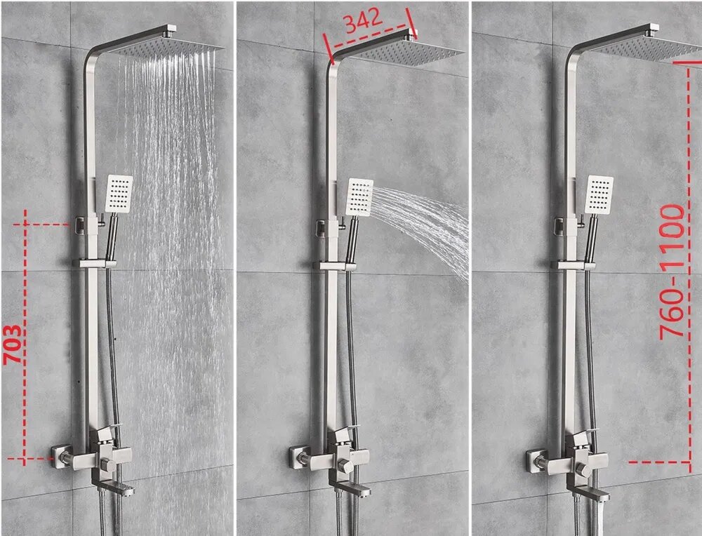 Отзывы на Душевая стойка c верхним тропическим душем и ручной лейкой, цвет: серый металлик