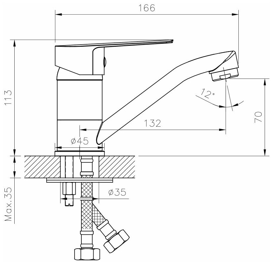 Смеситель для кухни (мойки) Rossinka Silvermix S35-23, рычажный