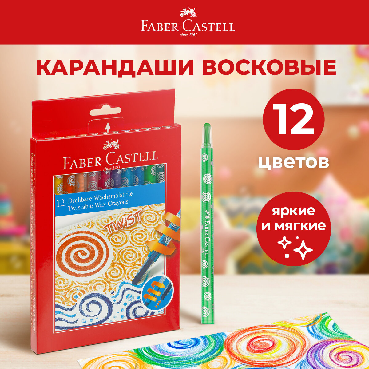 Карандаши восковые Faber-Castell, 12цв, выкручивающийся стержень информация: