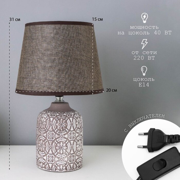 10 цен на Лампа настольная с абажуром «Мандилина серый» Е14 18×18×29 см RISALUX