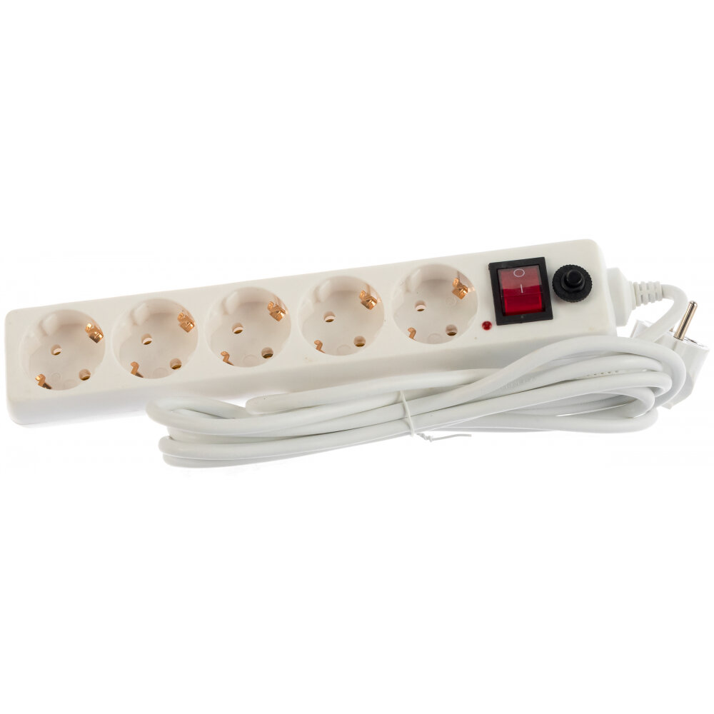 Удлинитель бытовой GES-10-2x075-5-5m, 10А, 2х0,75 мм2, 5 мест, 5 метров, без заземления
