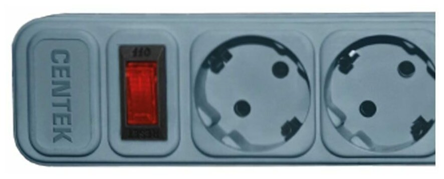 Сетевой фильтр Centek CT-8900-5-3,0 Gray (серый) 5 розеток, 3 м, двойная защита, макс до 2200 Вт