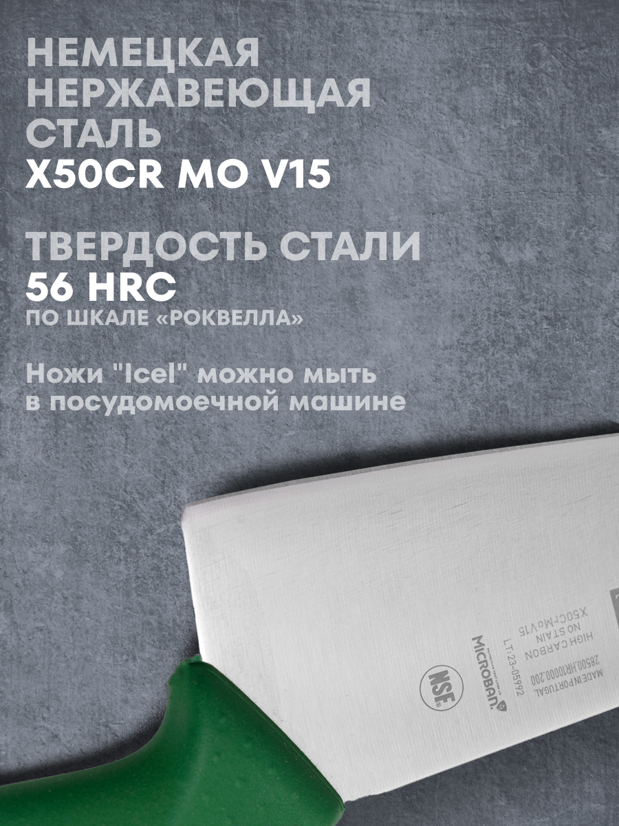 Нож поварской 20/33, 5 см, тип Шеф, зеленый, HoReCa Icel, материал нержавеющая сталь информация: