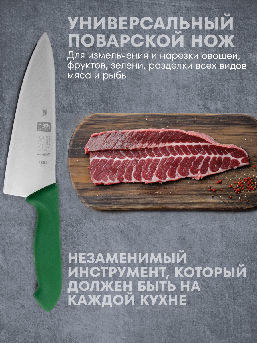 Отзывы на Нож поварской 20/33, 5 см, тип Шеф, зеленый, HoReCa Icel, материал нержавеющая сталь
