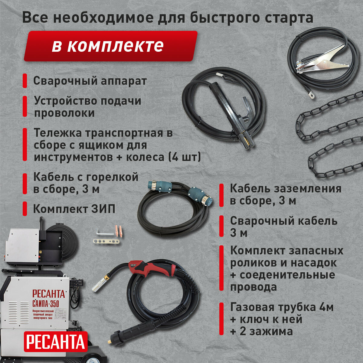 10 цен на Сварочный инверторный полуавтомат САИПА-350 Ресанта, MMA, MIG/MAG, 380В, 350А, ПВ - 60%