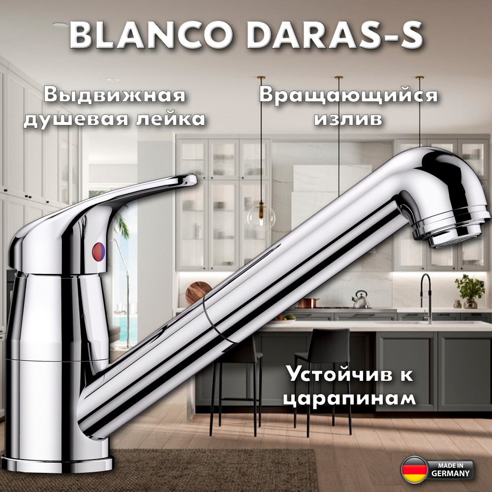 10 цен на Смеситель для кухни BLANCO DARAS-S Хром, горизонтальный, выдвижной излив