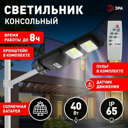 Светильник уличный ЭРА 40W 5000K 750Лм светодиодный консольный на солнечной батарее с пультом ДУ с датчиком движения IP65 черный