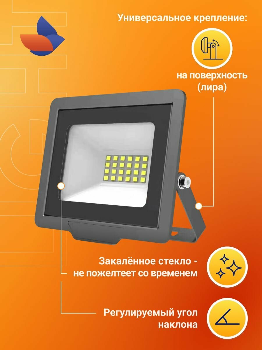 Прожектор светодиодный уличный LED RSV / Светильник настенный и накладной 1600 Лм, 20 Вт, IP65, черный, уличное освещение, фонарь, RSV-SFL-3-20W-6500K-IP65 420 ₽