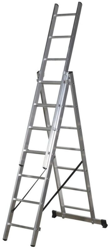Лестница трехсекционная алюминиевая, 3 х 9 ступеней, H=257/426/591 см, вес 11,18 кг