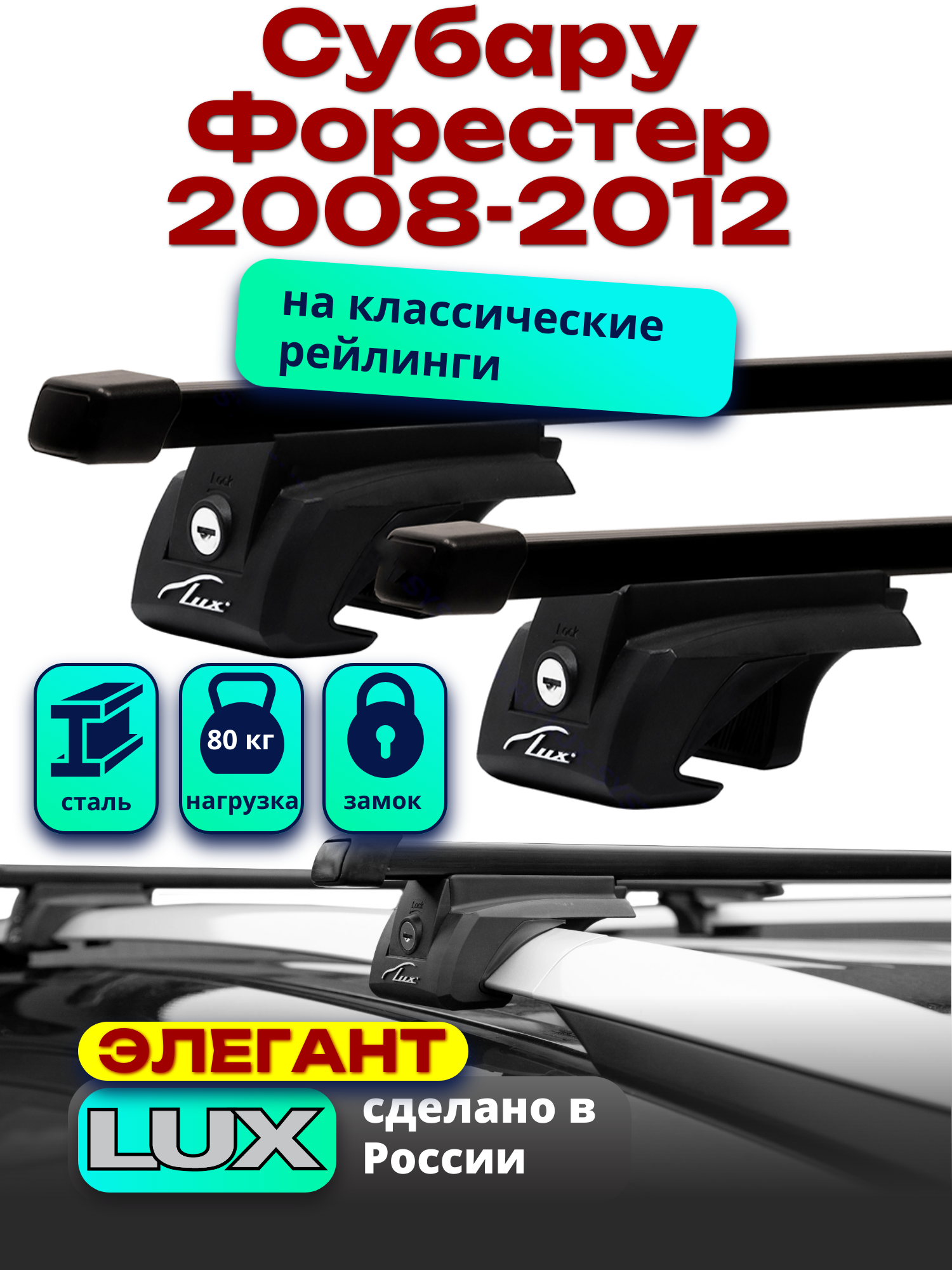 Багажник на крышу Субару Форестер 2008-2012 на рейлинги, черный, прямоугольные дуги, LUX элегант информация:
