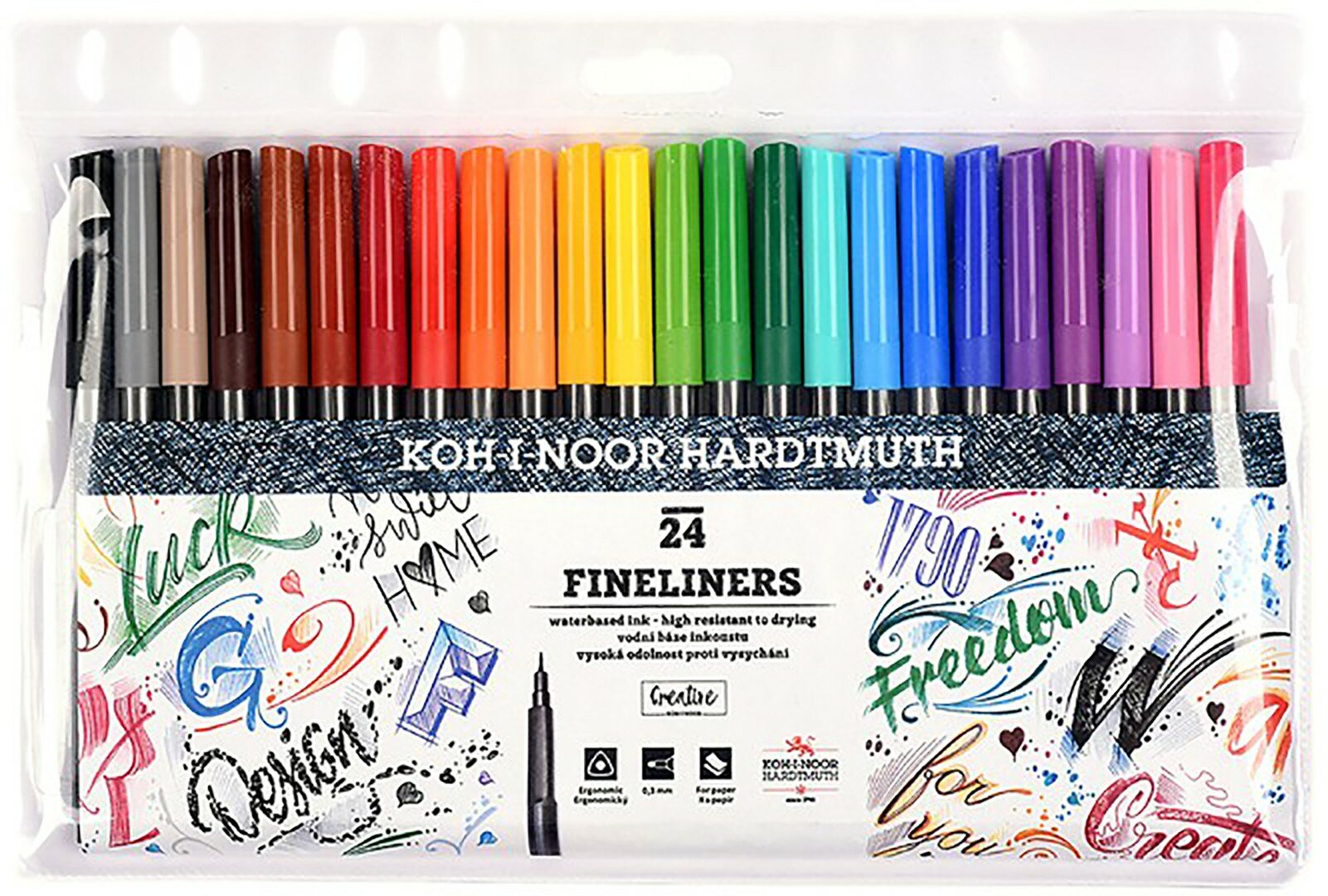 Набор линеров KOH-I-NOOR Fineliners, 24 цвета, 0,3 мм, в ПВХ упаковке