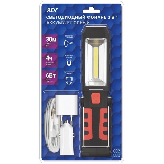 10 цен на Фонарь ручной Rev аккумуляторный, поворотный механизм, встроенный магнит, литиевый аккумулятор, 6Вт, 2000 мАч, 29055 1
